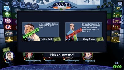 これらのメカニズムは、 いずれも株を売却する際にプレイヤーが様々な要因を考慮できるよう、 複数の株式市場の要素と融合しています。 株をずっと保有し、 株式分割で利益を得ることを狙うか、 今後会社が破産しないようすぐに売却しますか? あるいは、 大半の株主のようにゲームの終わりまで株を保有し続けるか、 入札を視野に入れて流動性を重視しすることもできます。 さらに、 一つの会社に多額の投資してリスキーなプレイをすることも、 または投資先多様化してリスクを軽減することもできます。