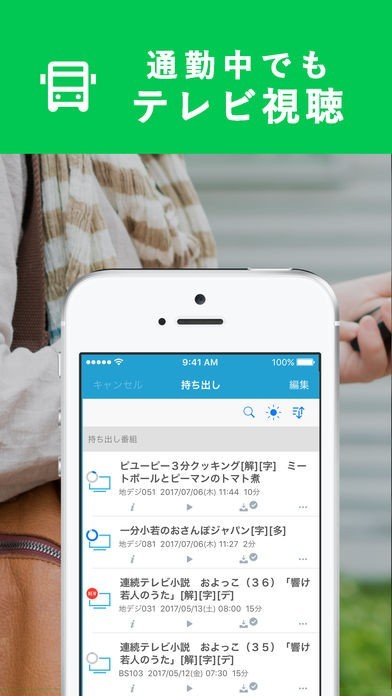 テレビやレコーダーで録画した番組をダウンロードして視聴できます。録画番組を持ち出すことで、家の中だけではなく、電車や飛行機の中でも録画番組を楽しむことができます。