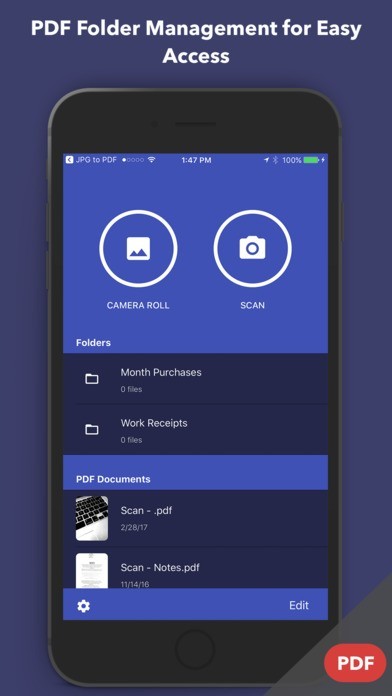 Manage your PDF documents with folder management and file naming. Keep the app uncluttered when you have a lot of PDFs!