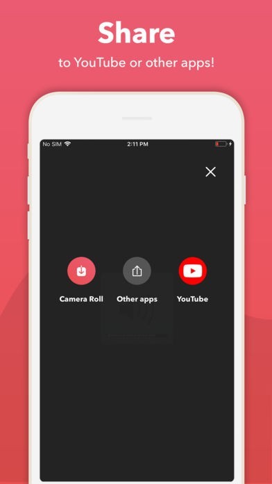 • Share and export your recordings to other apps, via email or AirDrop. You can also export your recording to your computer via WiFi or any other app for more specialized video editing.