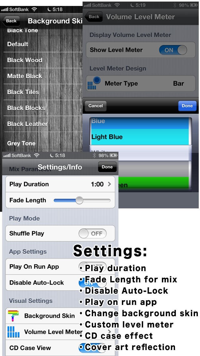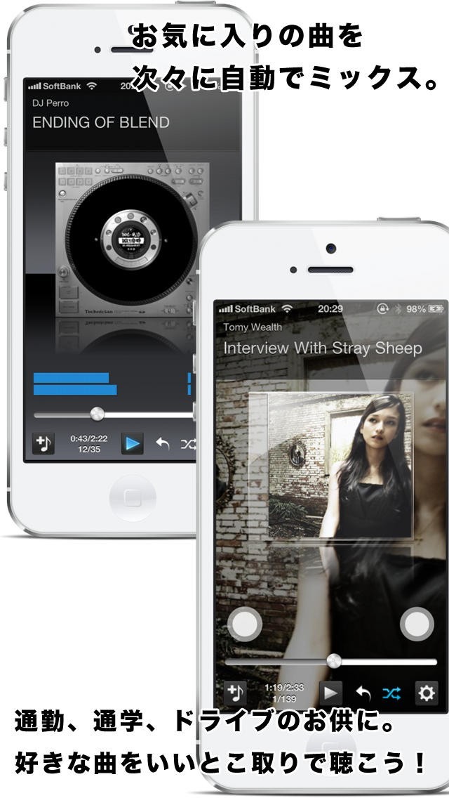 スマートフォンのライブラリ内に保存してある音楽を自由にミックスすることができるようになっているので、DJ気分でオリジナルミックスを作ることが可能となっています。
