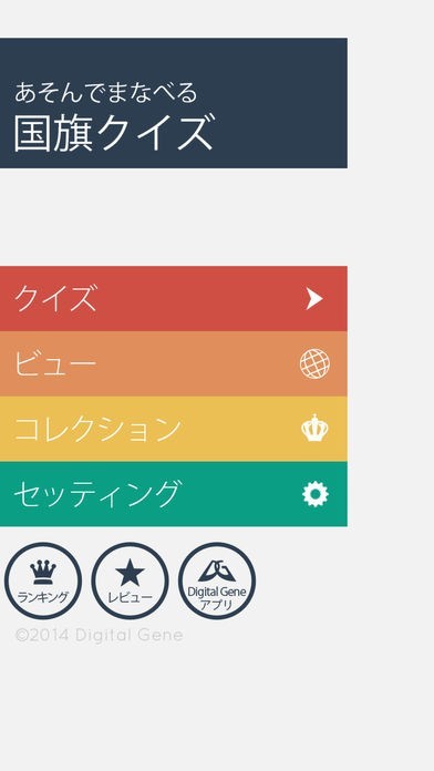 App Storeより引用ゲーム感覚で世界の国旗を覚えることができる教育系ゲームです。出題された国の国旗を4択の中から当てるクイズです。