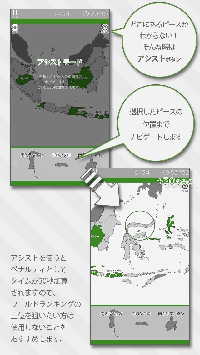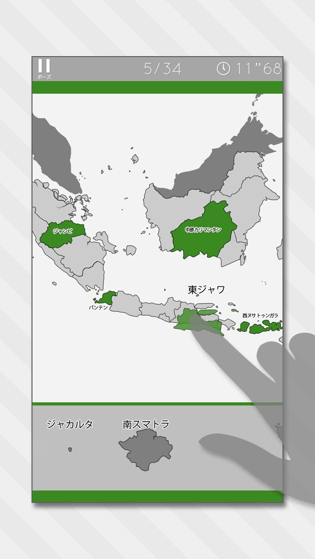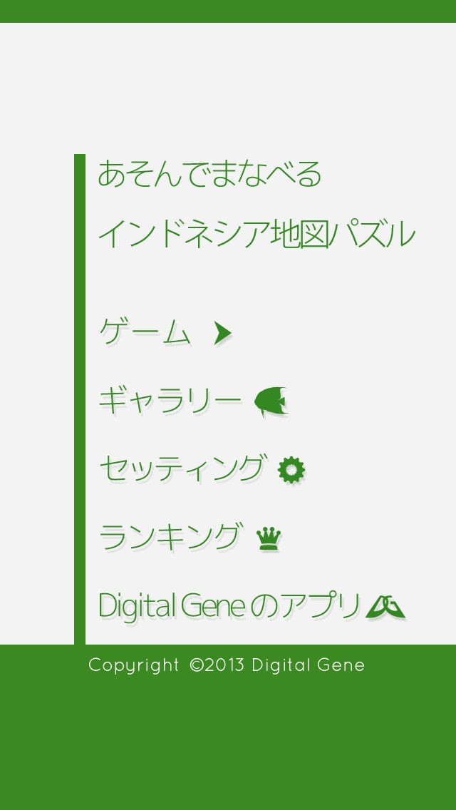 App Storeより引用ジグソーパズル感覚でインドネシアの地図を覚えることができる教育系ゲームです。楽しく軽快に遊べることを重視して作りました。