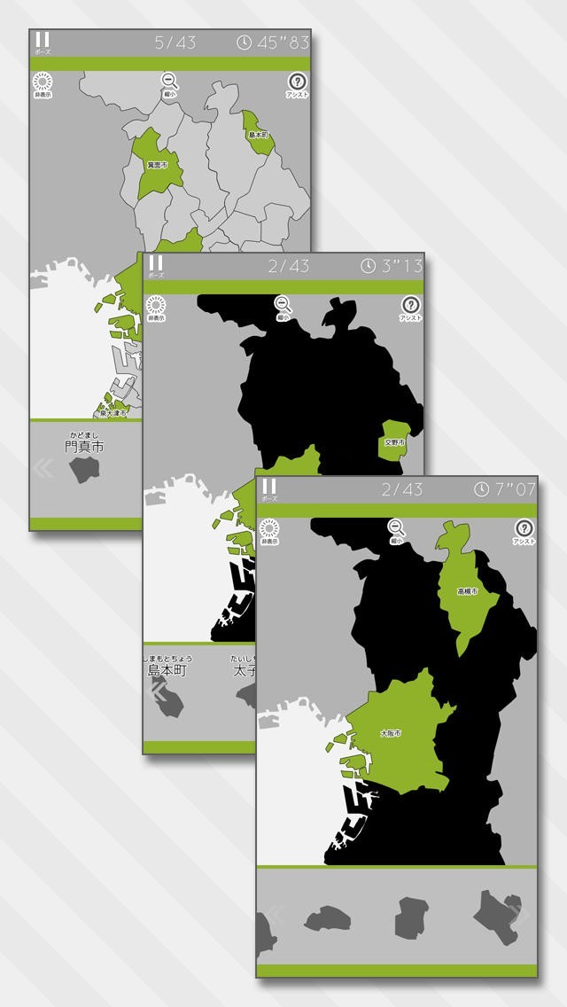 大坂府の市町村をゲーム感覚で覚えられる!3つのモードを収録した本格パズルゲーム
