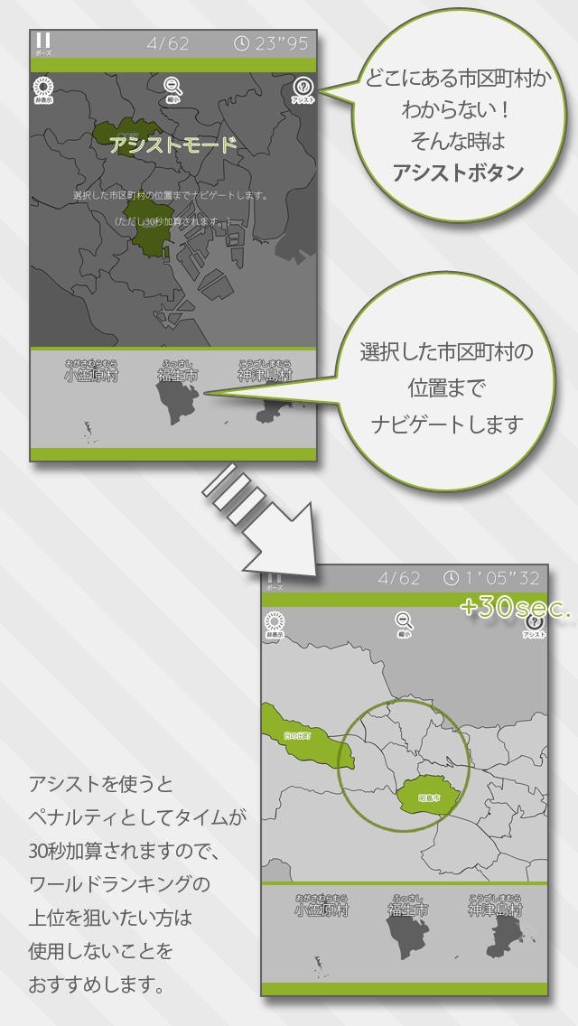 子供の学力を向上させるための「教育系ゲームアプリ」が、注目を浴びています。「あそんでまなべる 東京都地図パズル」は、その類の一つです。東京都の市区町村をパズル感覚で学べます。「教科書の勉強は堅苦しくて集中力が続かない」というお子様に使わせてあげると、楽しく取り組んでくれるはずです。ただ、ノーヒントでいきなり市区町村パズルにチャレンジしても、正解を出すのは難しいと思います。したがって、最初はアシスタント機能を使ってください。そうすれば、正解を誘導してくれるます。なお、本アプリは、大人が使ってもOKです。出張や旅行で地方から東京訪れる方が使っても役に立ちます。