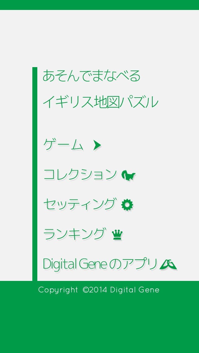 App Storeより引用ジグソーパズル感覚でイギリスの地域圏を覚えることができる教育系ゲームです。