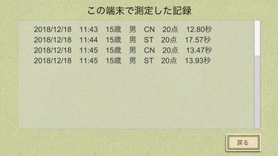 問題はそれぞれ20問あり、正解数とタイムが表示されます。
