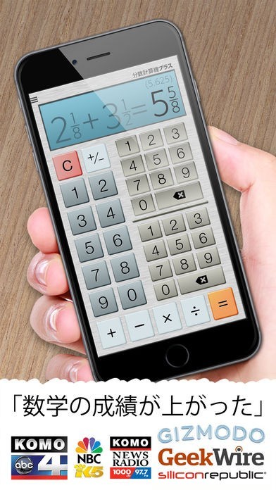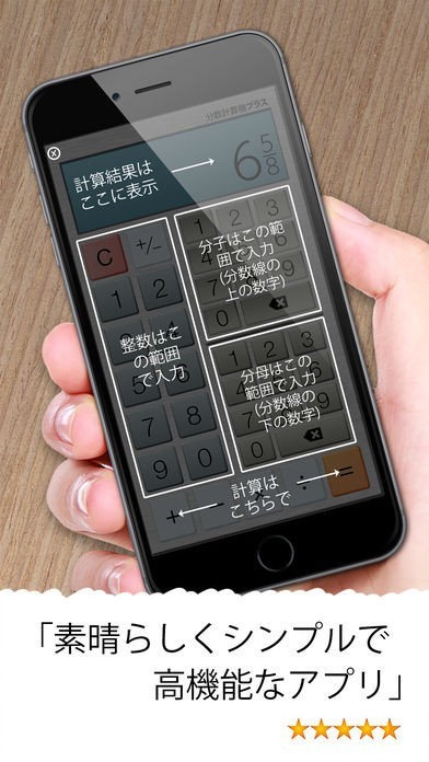 分数計算機プラスは分数の表示をまるで紙の上で計算しているかのように表示し作業することができます。小さいお子さんの勉強や料理の分量、日曜大工など分数の計算をより簡単にわかりやすく行うことができます。