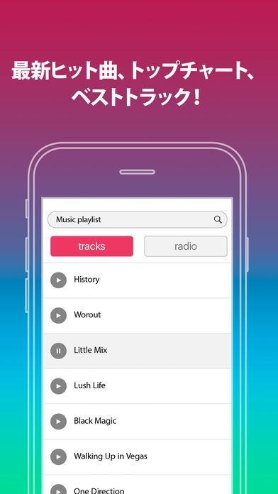 たくさんの曲からお気に入りが選べて、しかもシンプルで使いやすいプレイヤーを探している。 そんな時には『Mgic』が活躍してくれるでしょう。 フリーワードやアーティスト名、ヒットチャート、ジャンルなどから好みの曲が探せる検索機能を搭載。 検索機能の一部として音声検索も搭載しており、料理中で手が離せない時なども手軽に音楽が探せます。 これはと思った曲はプレイヤーでそのまま再生可能。必要充分な機能が揃ったプレイヤーは、シンプルながら使い勝手も抜群です!