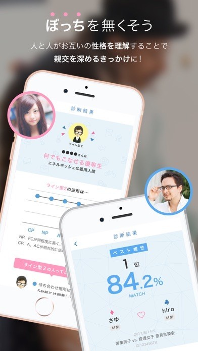 診断参加者の相性はわかりやすくランキング形式で表示。また参加者のそれぞれの性格も詳しく知ることができます。