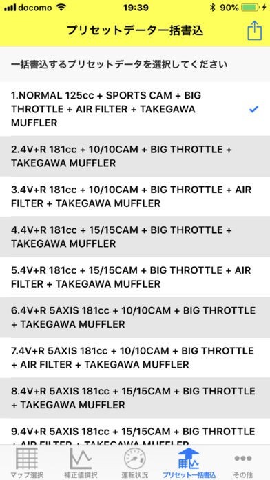・武川製ボアアップキット等と組み合わせたプリセットデータが用意されています。プリセットデータを簡単にFI-CONに書き込むことが可能です。