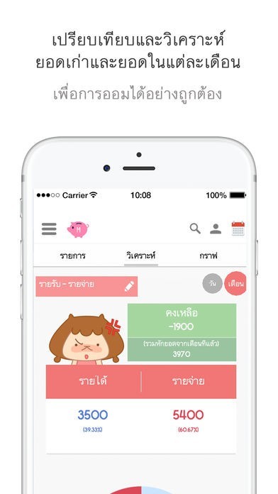 ▼ คำนวนและวิเคราะห์ รายรับ - รายจ่ายในแต่ละวันและเดือน พร้อมทั้งรูปกราฟแบ่งแยกเป็นหมวดหมู่ให้ดูง่าย
