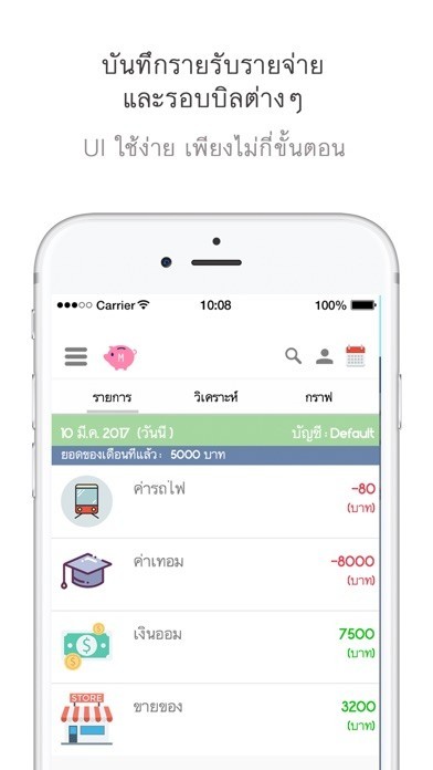 ▼ บันทึกรายการต่างๆได้สะดวก รวดเร็ว ไม่ว่าจะเป็นเงินออม เงินสะสม การใช้จ่าย รายไดั รายรับ