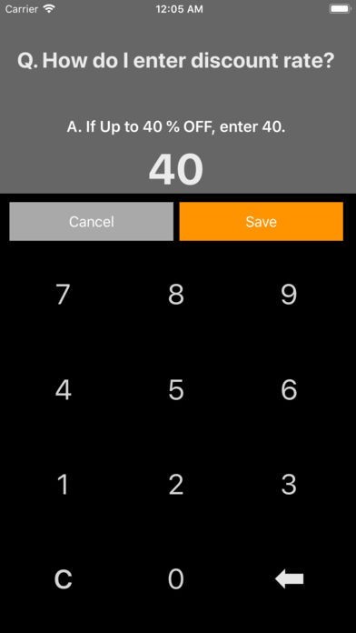 製品の価格を入力した後、割引ボタンを押すと割引が適用された最終価格を見ることができます。