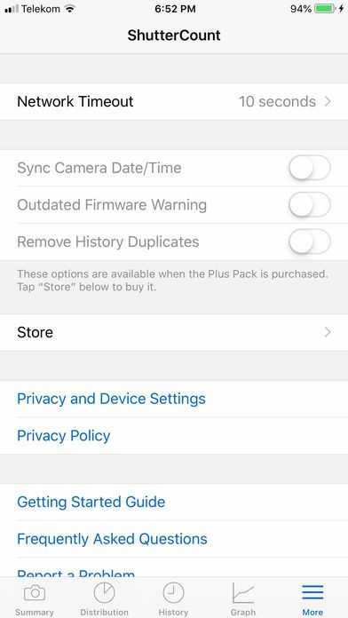 オプションのPlus Packにより、シャッターカウントのグラフと予測、履歴ログの重複削除、カメラの日付と時刻の同期ができるようになっているのでかなり使い勝手が良くて満足できます。
