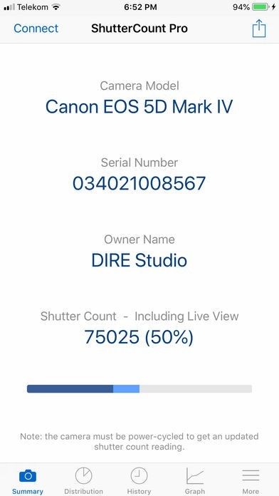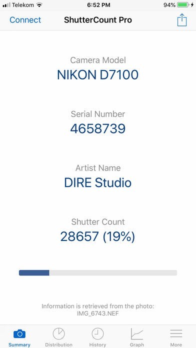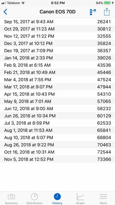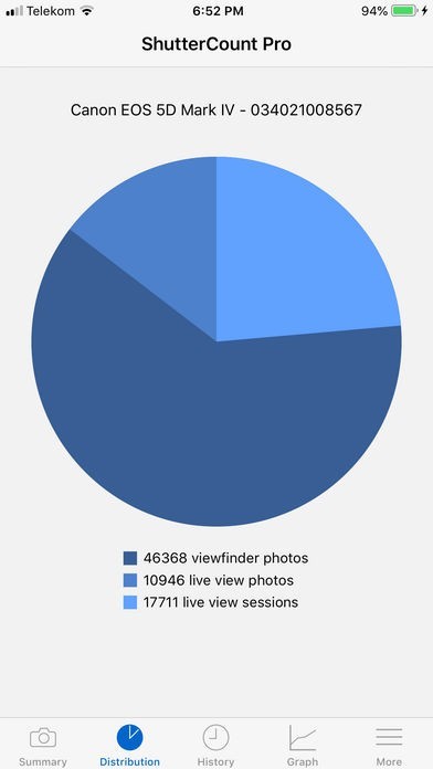 ShutterCount displays the number of shutter actuations (the shutter count) of your Canon EOS, Nikon or Pentax digital camera - see the complete list of supported models below. The shutter count is read directly from Wi-Fi connected Canons, and from photos for Nikon and Pentax cameras.