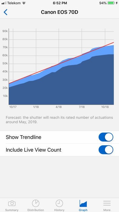 Forecasting is not available for certain Nikon and Pentax models. For more information please see the app's Tech Specs page: https://www.direstudio.com/shuttercount/tech-specs
