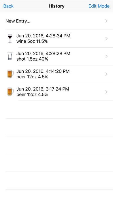 iDrunk remembers all entries you have made so you don't have to type in every drink every time you want to see your bac.