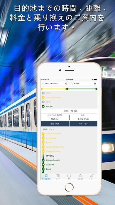 App Storeより引用リスボン地下鉄ガイドは地下鉄システムを使用して、町を最適な経路を構築するために開発されます。
