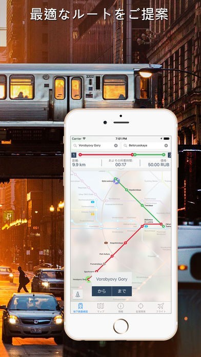 App Storeより引用モスクワ地下鉄ガイドは地下鉄システムを使用して、町を最適な経路を構築するために開発されます。