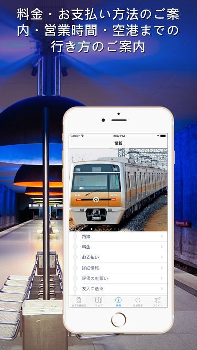 見やすいデザインで簡単に地下鉄の時間や経路を確認できる