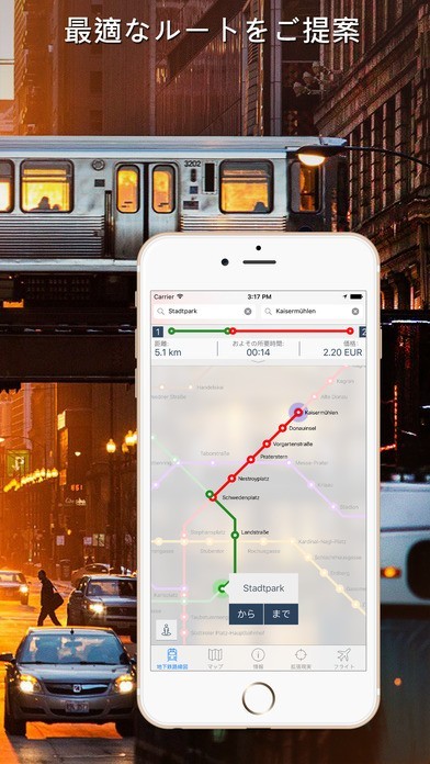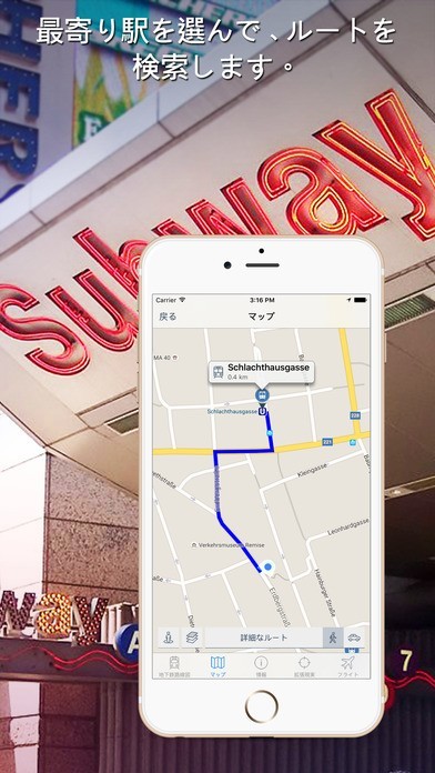 App Storeより引用ウィーン地下鉄ガイドは地下鉄システムを使用して、町を最適な経路を構築するために開発されます。