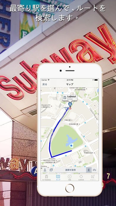 このアプリでは、今自分がいる場所から最寄りの地下鉄の駅までのルートを調べることができるので、上海に初めて来た人でも簡単に地下鉄の駅の場所を調べることができます。