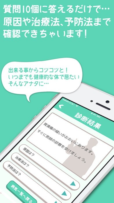 10の質問に「はい」か「いいえ」で答えるだけで、無料で診断する事が出来るアプリです。