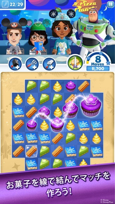 夢中になること間違いなしのマッチの魔力で480のステージを楽しもう!ミッキー、ミニー、アリエル、ベル、バズ・ライトイヤー、ジャック・スケリントンなど、たくさんのキャラクターたちと一緒に、ディズニーの有名レストランに来るお腹を空かせたゲストにおいしいごちそうを食べてもらっちゃおう。世界中のディズニーパークやリゾートにあるレストランを回る夢のツアーで、誰よりも手際よく注文をこなせるかな?