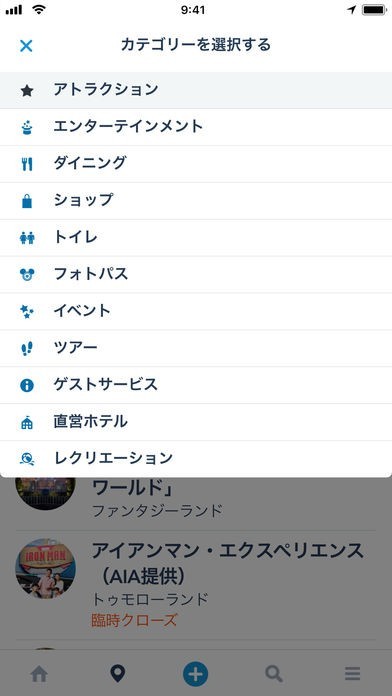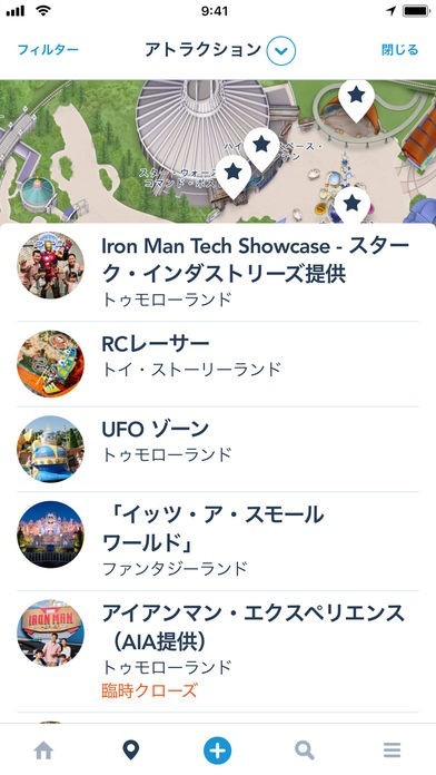 アトラクションやレストランの場所を確認できる
