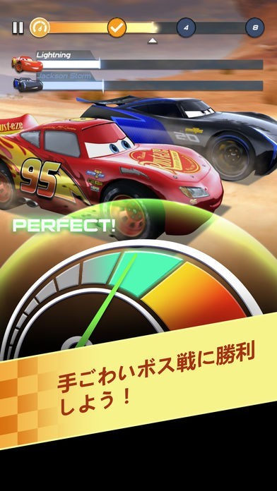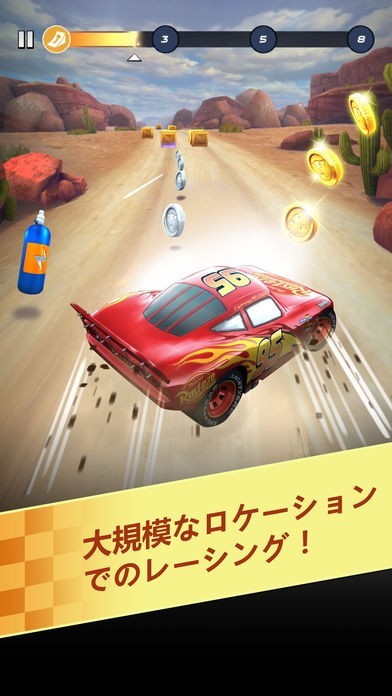 ビーチやラジエーター・スプリングスなど「カーズ3」の映画に登場するロケーションのコースを人気のキャラクター達が猛スピードで駆け抜けて、臨場感あるレースを楽しめます。