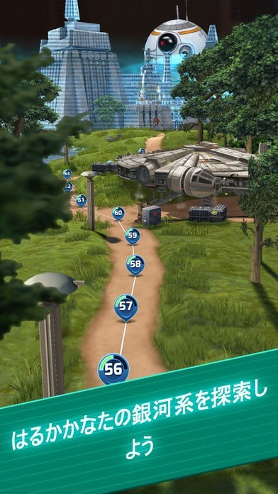 レイやハン・ソロ、マズ・カナタを仲間に加えて銀河を冒険しましょう。デス・スター、ジャクー、タコダナでミッションをクリアして、キャラクターのレベルを上げましょう。レベルを上げたら報酬をゲットできます。