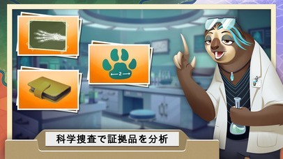 研究所にいるナマケモノのハリエットが…証拠品…の…分析…を…手伝って………く…れる。