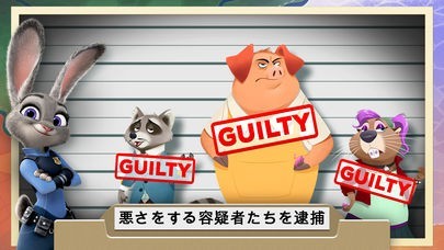 新米警官のジュディ・ホップスとニック・ワイルドと一緒に捜査しよう。クロウハウザーやグリッゾーリ、ライノウィッツ、ボゴ署長といったズートピア警察署の精鋭のバックアップで事件を解決。