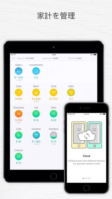 それぞれのiPhoneで入力した内容を一か所に統合することができます。家族一人一人のお金の事情がわかるだけでなく、全員で旅行のために協力して貯金するといったこともできます。