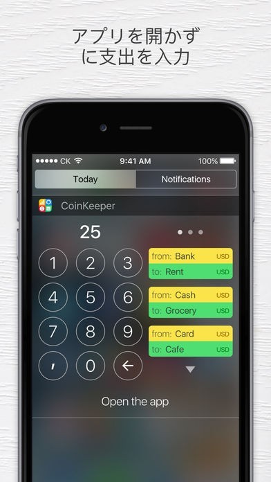 アプリを開かなくても支出を入力できる