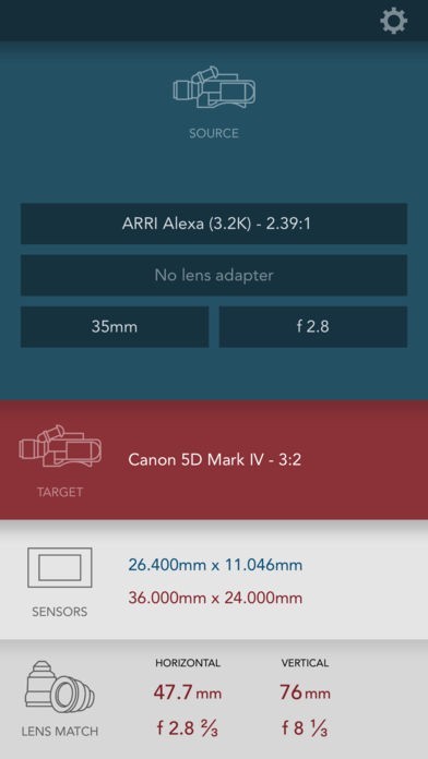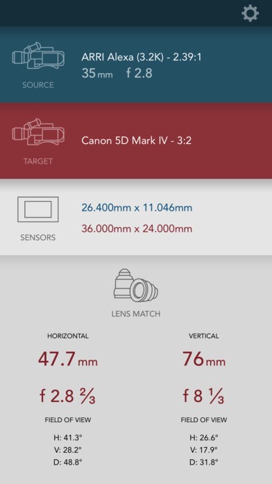 Stop worrying about crop factors: Lens Matcher makes finding corresponding lenses effordless and will give you much more precise results. The app will show you the matching horizontal and vertical focal lengths to compare formats with different aspect ratios. It also calculates the f-stop, so you can even match the depth of field!