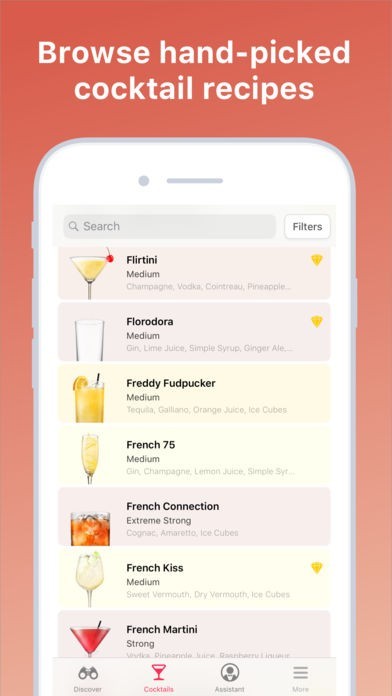 If you choose to purchase Cocktail Flow Premium, payment will be charged to your iTunes account, and your account will be charged for renewal within 24-hours prior to the end of the current period. Auto-renewal may be turned off at any time by going to your settings in the iTunes Store after purchase. Current Cocktail Flow Premium subscription price starts at $4.99 USD/month, and one-month and 12-month packages are available. Prices are in U.S. dollars, may vary in countries other than the U.S. and are subject to change without notice. No cancellation of the current subscription is allowed during the active subscription period. If you don’t choose to purchase Cocktail Flow Premium, you can simply continue using Cocktail Flow for free.
