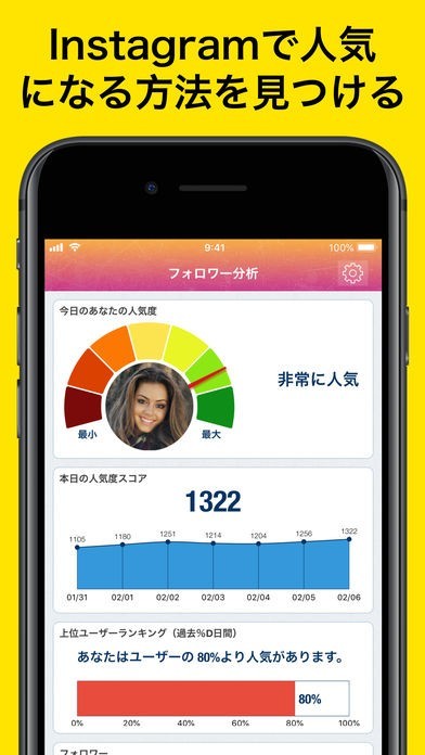 • フォロワー分析: フォロワーを追跡し、Instagramで人気になる方法を見つける。