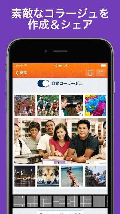 このアプリではすぐにコラージュが出来る機能が搭載しています。かの機能を利用すれば複数の写真を瞬時にまとめてコラージュを作れるので作業時間の短縮にもなり非常に便利です。