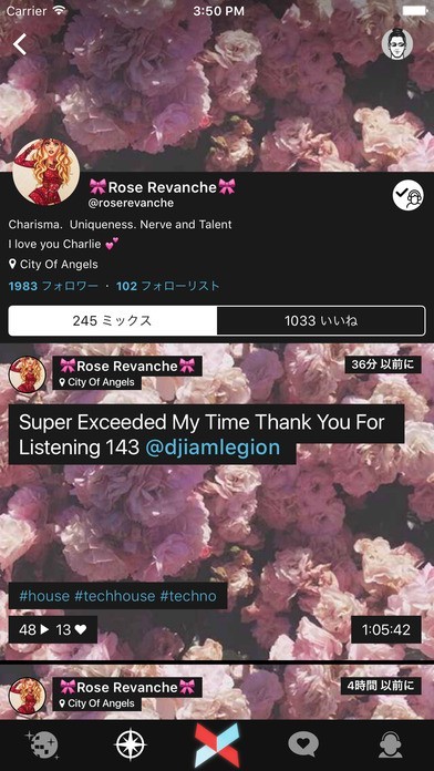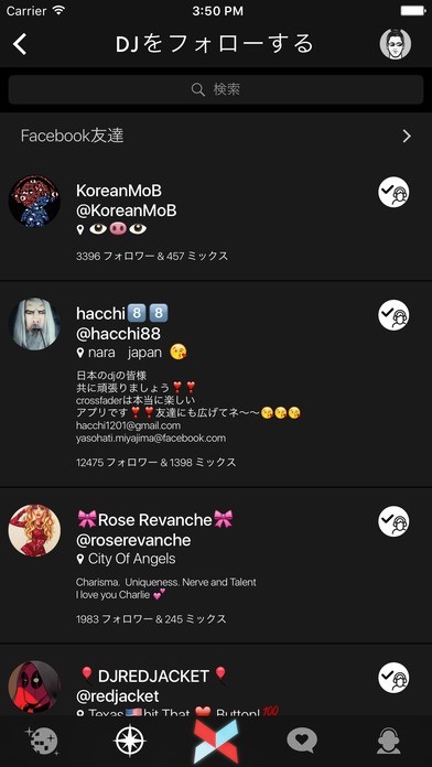 「Crossfader」を使えば、簡単にDJのようになれて、演奏を聴いてもらうことができます。よって、ジャンルはなんでも対応することができますが、特に、「エレクトロニカ」や「ハウス」や「ダンスミュージック」などが適しています。 自分が演奏を開始すると、人が集まってきて、ハートボタンを押してくれたりするので、モチベーションアップにつながりますし、コミュニケーションをとったり、場合によってはお友達になれたりもするかもしれません。 逆に、観客として、人気がある方のところに行くことによって、参考にしたりといった使い方をすることもできます。 加えて、自分のプロフィールにミックス数といいね数が表示されるので、自分の活動の経過を一目で把握することができるので、目標などを設定して頑張ったりすることも可能です。