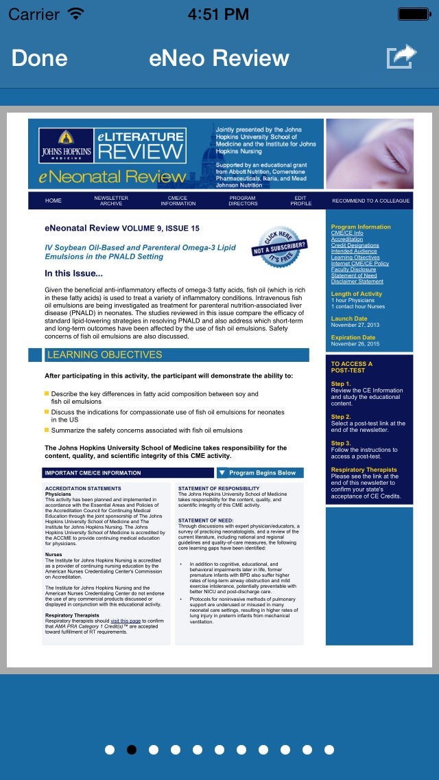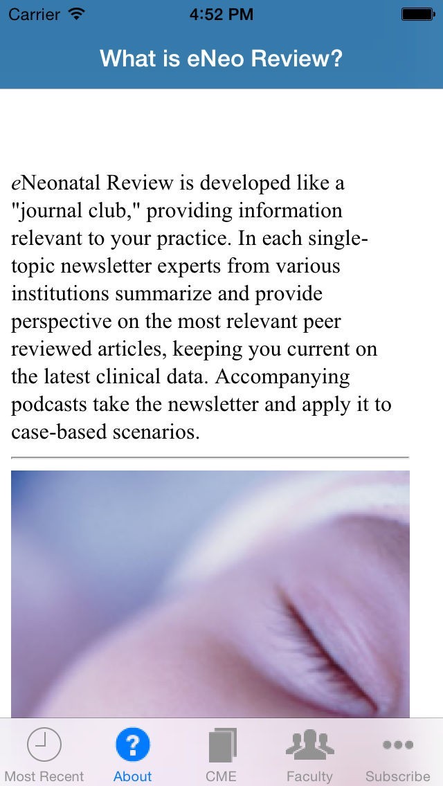 App Storeより引用eNeonatal Review is developed like a "journal club" and provides up-to-date information directly relevant to practice. In each topic-focused newsletter, experts from the Johns Hopkins University School of Medicine and other institutions summarize and provide an expert perspective on the most relevant peer reviewed articles, keeping you up to date on the latest clinical data.