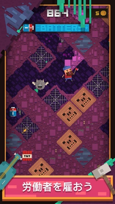 ただ地下を掘って進めるだけのゲームでなく地下を掘り進めながら進んで行きながら自身の生命線であるバッテリーの残量を上げたりまたコインを集めて新しいキャラを開放できる楽しみもあります。
