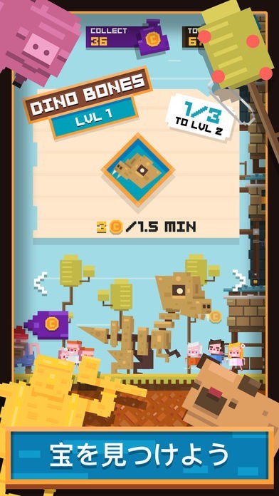 地下には、展示品が埋まっていることもあり、集めることでコインが貯まる仕組みとなっています。後々、ゲーム攻略が楽になるキャラクターの購入などのメリットがあるため、展示品を見つけたら確実にゲットしましょう!