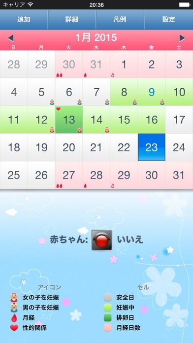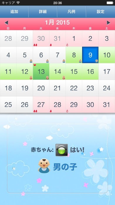 一か月内の妊娠に関するイベントをアイコンでマークできる