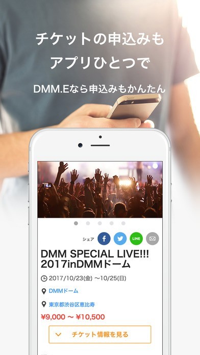 DMM.Eとはアイドルやスポーツ、音楽の情報が盛りだくさんのアプリです。その他にゲームやお笑いの情報もあります。イベントの気になる情報が盛りだくさんなのでぜひ利用していただきたいです。最大の魅力はアプリからチケットを購入できることです。スマートフォン1つで情報の確認からチケットの購入まですることができるので便利です。