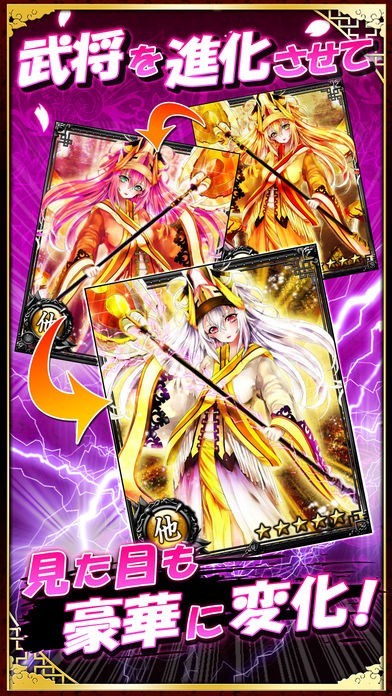 自分の好きな武将を強化することで、そこからさらに進化させることが出来ます。進化すると、イラストもちゃんと変わりますよ。最強部隊を編成させて、選抜戦を勝ち抜きましょう!
