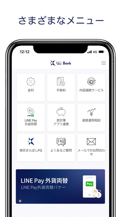 *「LINE Pay外貨両替」は、きらぼし銀行の業務提携先であるSBJ銀行の外貨両替サービスの一つであり、お客さまとの取引の相手方はSBJ銀行となります。