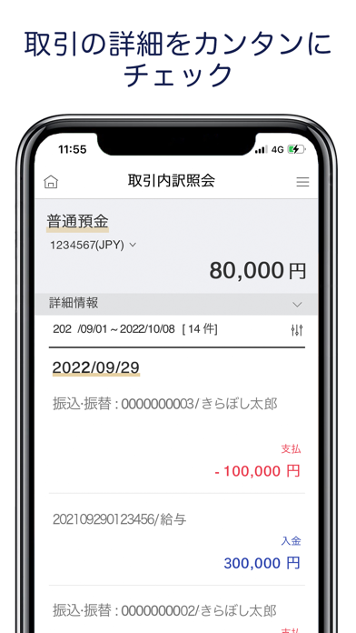 口座残高、入出金がリアルタイムでかんたんに確認できます。