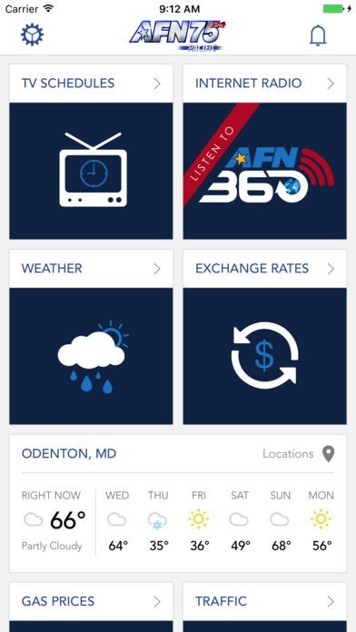 アメリカ軍が運営する軍関係者のための放送局ネットワークAmerican Forces Network。「AFN Pacific」ではそのうち太平洋地域で行われているラジオ放送をインターネット経由で聴くことができます。またそれ以外にも、テレビ放送の番組表やユーザーがいる場所に応じた天候情報、為替レート、ガソリン価格、交通情報などを閲覧することができます。